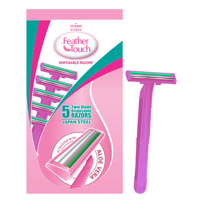 Meet the Vi-John Women Feather Touch Razor, your ultimate partner for a delicate, smooth shaving experience. This hair removal razor has its sharp edge covered in chromium and PTFE (Polytetrafluoroethylene), ensuring a smooth glide across your skin, leaving it soft and hair-free.